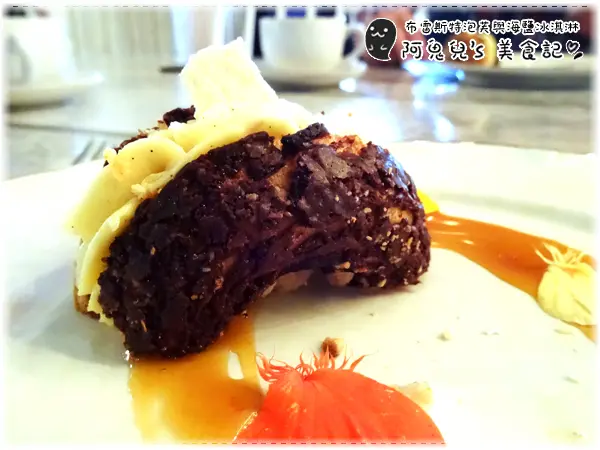 旁邊搭配海鹽冰淇淋,不過融化速度有點快,拍照時已在融化了~表示用料天然吧!