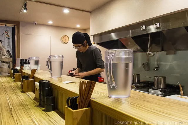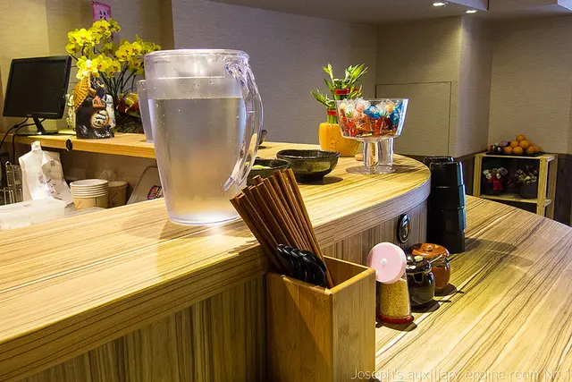 麻糬今天是坐在吧台的位置,店家的水是涼水。麻糬喜歡冰水。