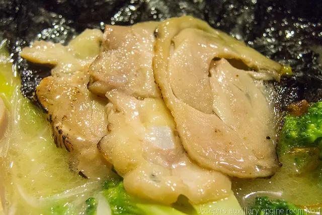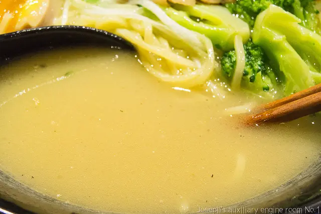 麵條很普通,沒有什麼可著墨的地方。那個配菜是花椰菜,讓人感到台味。畢竟這是從彰化起家的拉麵。