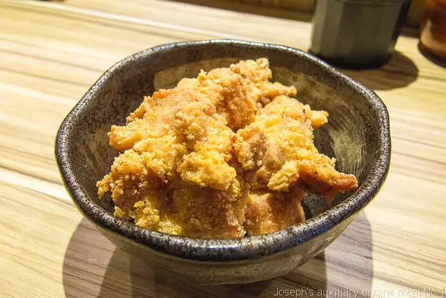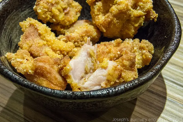 很像台式的無骨鹽酥雞,但是沒有用胡椒鹽。吃起來粉像是用起司酥炸粉,味道很淡。不會像台式的調味,麻糬會加七味粉增加香氣。