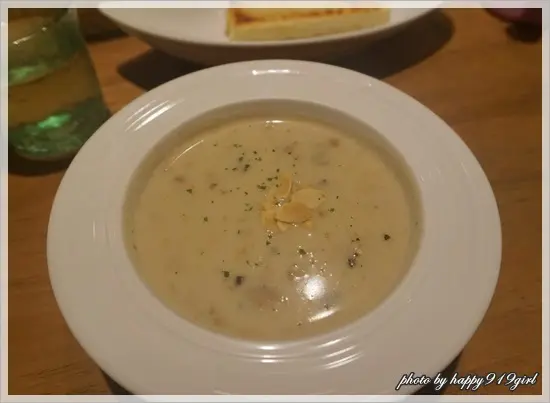 奶油蘑菇濃湯(貪吃價$50)嚐起來香濃順口,好喝到忘記要跟老公分享