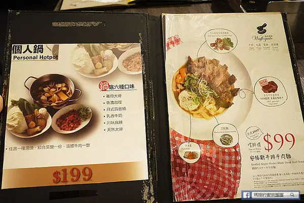 新推出的個人鍋物才199元,包含一種湯頭、綜合菜盤一份、溫體牛肉一盤和附餐白飯或王子麵、飲料則有檸檬紅茶/蘋果汁/雪碧和可樂任選一種,一人份可以吃飽飽的火鍋,若是雙人也可以做成鴛鴦鍋,這樣二種湯頭都能吃得到。