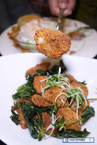 我好像是第一次在餐廳吃鹽酥雞,這雞肉酥炸後不油膩,外層香酥裡面的雞肉還保有肉汁不乾柴,加了九層塔多了一股香氣,意外讓我喜歡的一道好吃的開胃菜。