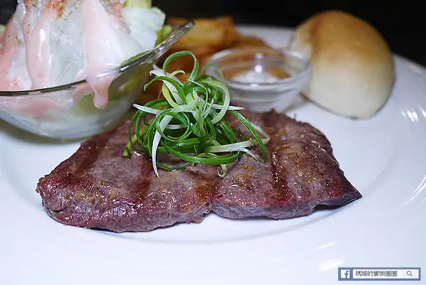 安格斯雪花牛大約六盎司大小,烤過後色澤看起來頗誘人