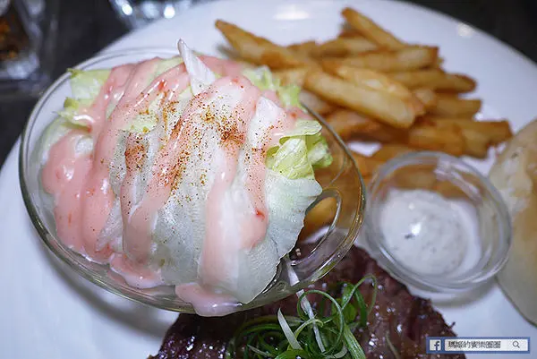 附的生菜沙拉是淋上梅子醬,帶著點酸甜的滋味,比較爽口不膩