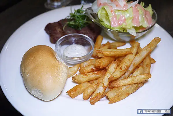 奶酥餐包熱熱吃口感鬆軟,薯條也炸得外酥內軟,附有松露醬汁沾化不沾都可以