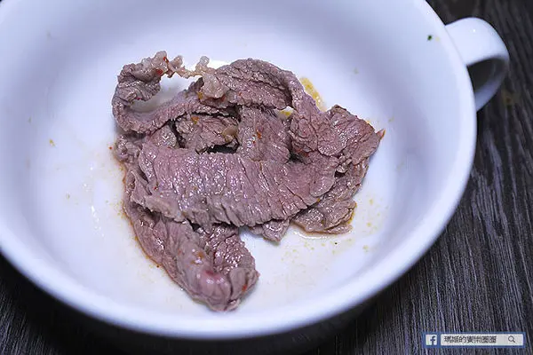 溫體牛肉色澤鮮嫩新鮮,和一般冷凍肉片比起來嫩度和彈性都很棒,肉香味在咀嚼中滿溢口中,非常好吃!以份量來說可能不太夠,會多想叫一盤。