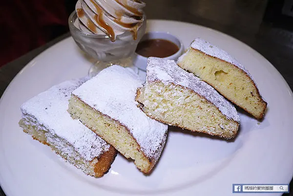 這厚鬆餅的外層灑了厚厚的糖霜,看起來很像波士頓派