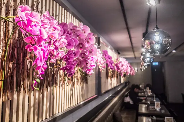 走進瓦法奇朵複合式餐廳,店內用餐環境是狹長的,一邊是沙發座椅,多以四人座為為主,桌與桌之間間距稍微小了一點但還在能接受的範圍裡,牆面上還有蝴蝶蘭作為裝飾,加上暖黃的燈光照射,有高級餐廳的高貴質感,咬咬是早上11點一開門營業就來還能拍到空景,12點一到店內瞬間客滿,客人多半也都是上班族跟學生居多