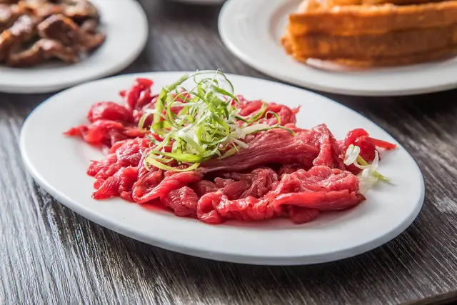 主餐我們選了溫體牛跟蝦仁漿,沒想到在這裡也可以吃到溫體牛,產地直送的溫體牛肉,肉色紅艷動人