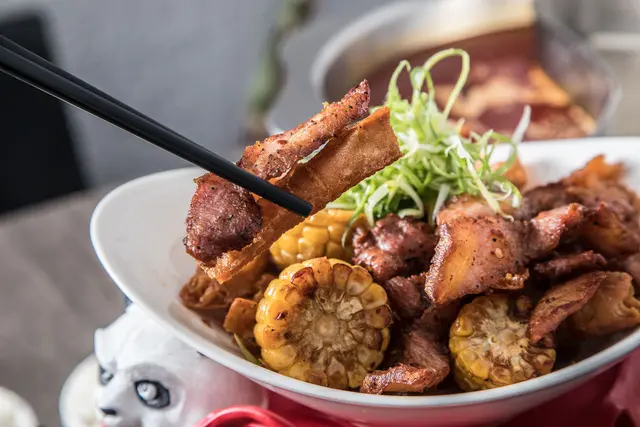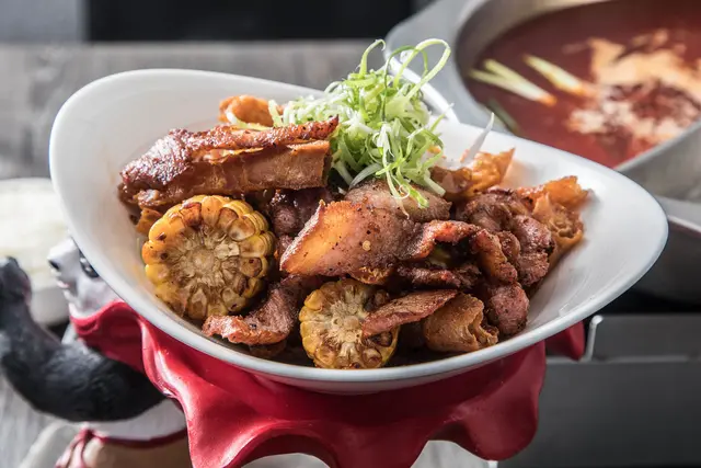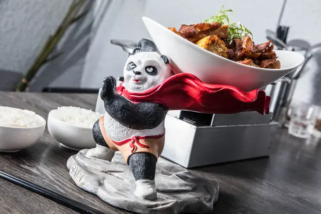 瓦法奇朵複合式餐廳光是這麻辣鍋就令人相當驚艷了,川菜的表現也是水準之上!必點!辣豬拌炸倆,上桌我跟友人都笑了出來,是功夫熊貓來上菜耶!熊貓故鄉是四川,由功夫熊貓來上菜也很合理,超可愛的!