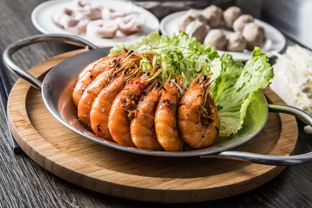 重慶乾鍋蝦的外層有著爆炒辛香料的醬汁,吃的時候先吸允蝦殼上的湯汁,再依序吃蝦頭蝦身,麻辣鮮香的滋味,吃到連手指上的湯汁都不放過吸的乾乾淨淨的