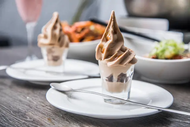 甜點是自製的奶茶冰淇淋,口感綿柔滑順,奶茶風味也很特殊