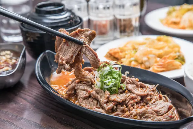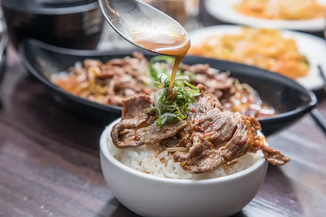 嫩牛銷魂飯御膳隨餐附贈例湯、甜品、小菜,加上嫩牛銷魂飯,份量十足,加上平日買一送一的優惠,CP值高到破錶!嫩牛銷魂飯是以牛里肌為基底,再以道地又夠味的四川調料烹調而成,一上桌即可聞到噴香的麻辣香氣,飯上還擺上一顆半熟蛋呢