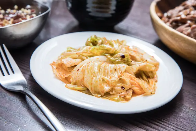 四川料理御膳裡面還有例湯、甜品、小菜,今天的小菜是辣炒高麗菜,微辣的四川風味更加凸顯高麗菜的甜脆口感