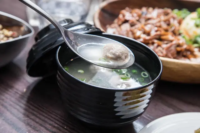 例湯是大骨丸子湯,湯頭喝起來相當清甜,丸子也很有彈性,清甜的湯頭恰好可以中和四川料理的辣度口感,舒服!