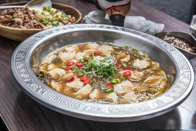 川菜料理也有不辣的菜色,老壇酸菜魚也是為人所津津樂道的經典川菜之一,上桌時即可聞到老罈酸菜清雅濃郁的酸香氣息,十足誘發人的食慾!