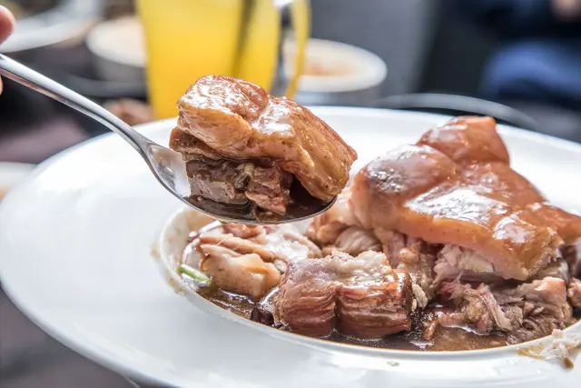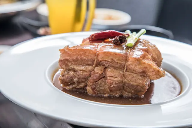東坡肉肉質入口即化,中間的膠質感相當厚重,帶有濃濃的醬香醍醐味,濃郁的醬燒香氣也是十足一道白飯殺手呀!