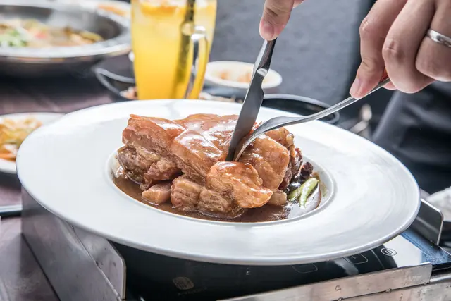 一刀下去毫無阻礙的刀尖直接接觸盤底,連瘦肉的部分都超軟嫩!