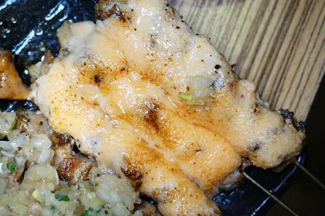 一口咬下可以吃到雞肉軟嫩還有鹽蔥的爽脆