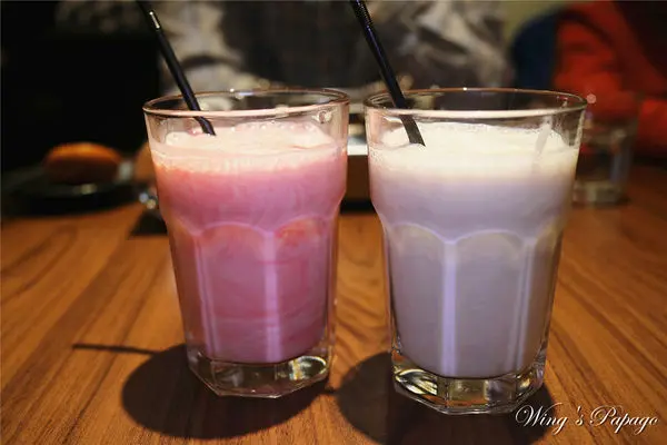 草莓及黑醋栗味濃,喝起來有清爽的優格及奶香味,香甜順口。