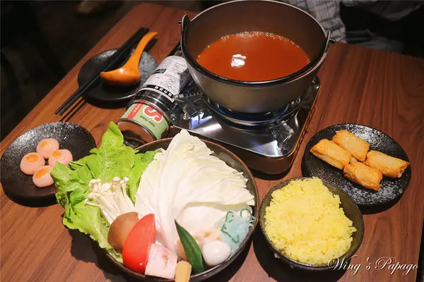 SHABU SHABU涮涮鍋附上小碗米飯、一份菜盤及湯咖哩鍋,