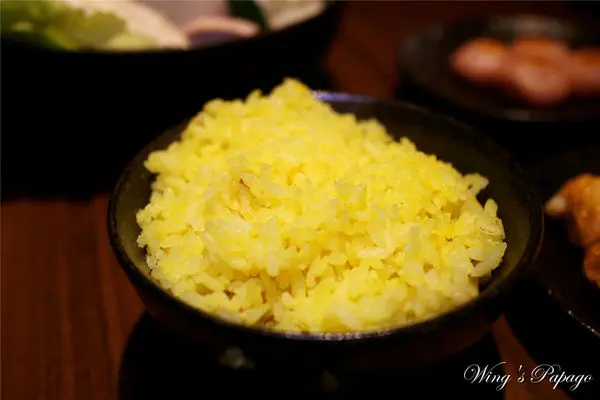 米飯是採用日本的越光米,搭配薑黃粉和十種營養的穀物混和烹煮,Q彈有嚼勁。