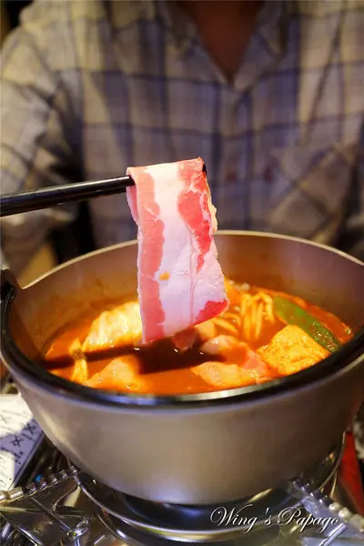 陸續把食材放入涮涮鍋中煮,這鍋的辣度因為有小朋友要吃只選了3,