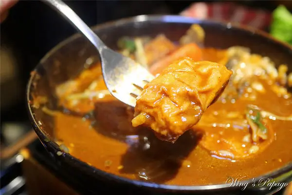 牛腹肉有豐富油脂,在咖哩鍋中輕涮幾下,嚐來香嫩可口,咖哩香氣頗為入味。