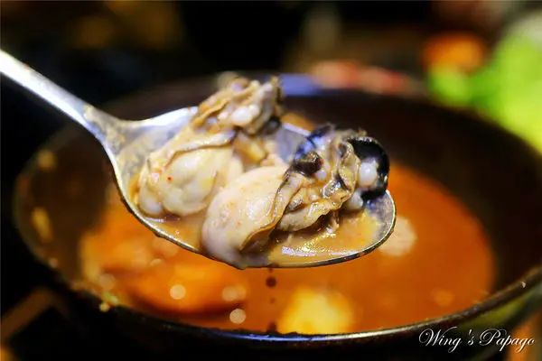 這時再把加點的帶殼牡蠣放入涮涮鍋中煮,飽滿的牡蠣嚐來肥嫩可口。