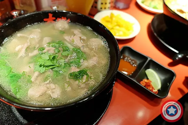感覺有點像越南河粉那種 旁邊會附上些許辣椒及醬料可以沾肉吃