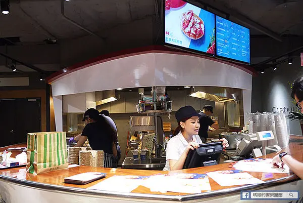 櫃位旁就有一個超大的取餐顯示牌,依序排隊點餐後,會拿到一個號碼牌,再依照上面的號碼取餐,由於才剛開幕大家都想嚐鮮,我選擇平日中午來,排隊狀況大約十分鐘,等餐也差不多等十分鐘左右,還算OK!