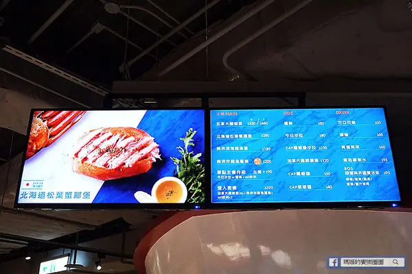 等了一下下輪到我點餐,點餐櫃台前有大大的菜單燈箱,那松葉蟹堡看起來內容豐富,快讓人流口水,還好今天也能吃到