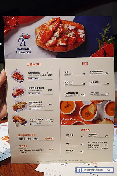 主餐的部份主要就是加拿大龍蝦堡、北海道松葉蟹腳堡、南非深海鱈堡和南非炸鱈魚薯條這四種選擇,另外可加90元升級為套餐,可選擇沙拉或薯條,再加一杯60元的飲料做搭配。