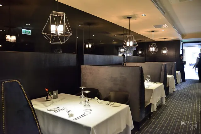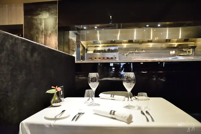 B-Cape Steakhouse 黑角牛排館旁為旗下的Patio No. 3 義式餐廳,餐廳採光較為明亮,而黑角牛排館的燈光較為昏暗,色系以黑色為主。