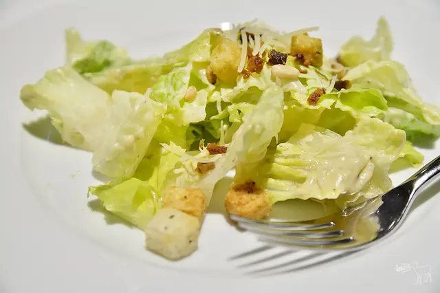 此套餐可從沙拉或湯品中擇一,我選擇凱薩沙拉,味道順口不過中規中矩,而且上方的麵包丁有些油。