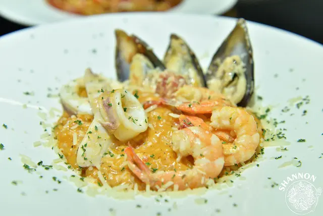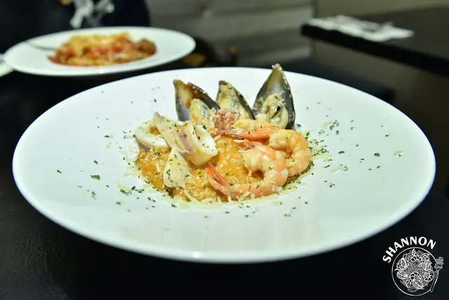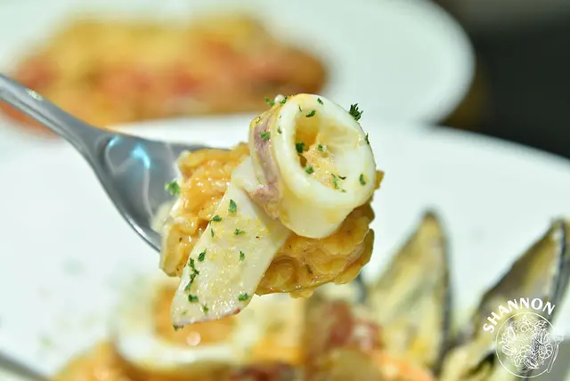 除了海鮮都還蠻新鮮外口感也都烹調的很適中,米飯不算有米心的但卻蠻Q彈有些咬勁,除此之外味道算是奶油加番茄的味道,在快膩口的時候可以吃到番茄塊有解膩的感覺,整體來說是不錯吃!