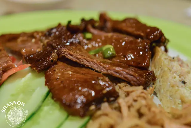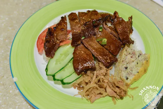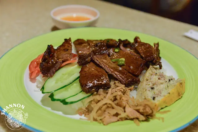 肉的味道也相同的很重,我們一致認為這肉烤太久所以乾乾柴柴的,米飯口感也是一般般, 旁的配菜不知道是什麼但和有一點像榨菜肉絲有股薑的氣味,整體還好就沒食完...就回憶到離我們公司較近的一間餐廳,我也有寫文章"台北信義區[來喫新越式料理]好吃的越式、泰式料理(捷運市政府/永春站)"或許可以選這也比較便宜味道也比較適合我!