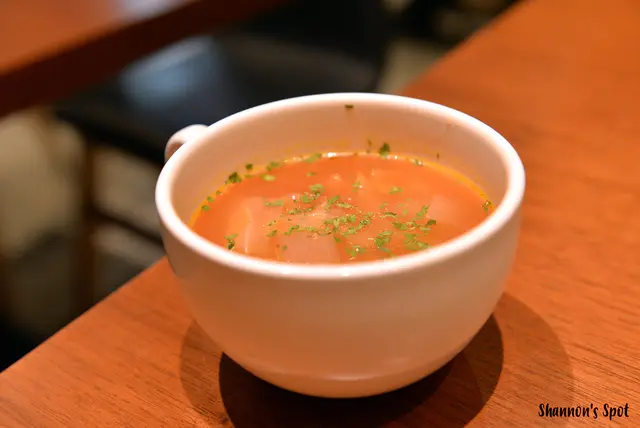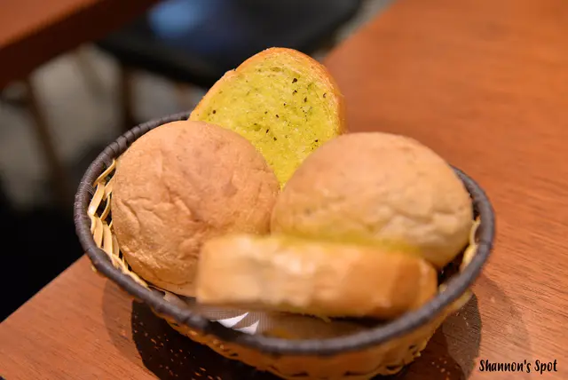 蔬菜湯的熱度很夠味道上也是還蠻OK的,餐包和大蒜麵包我個人就是喜歡這種大蒜麵包,應該說我就是不管它健不健康我都喜歡(連那種平價牛排店的大蒜麵包我也愛@@)