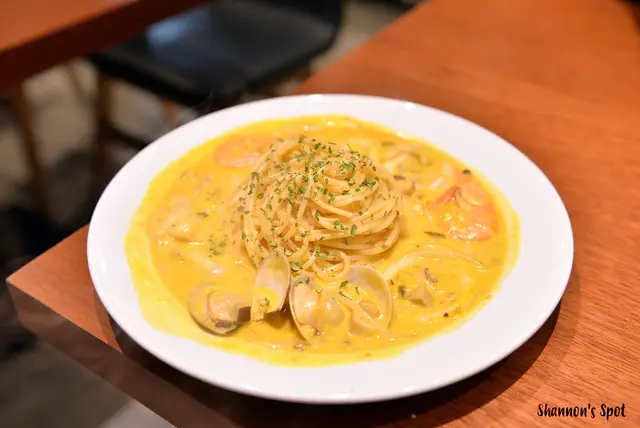 S點的金瓜海鮮義大利麵,我自己本身對南瓜興趣缺缺,但味道來說還OK麵條口感適中