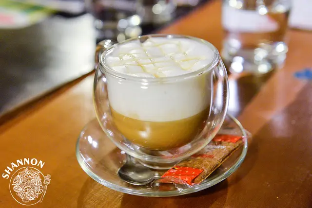 S點的我喝了一口就是苦香氣味,我自己是不太喜歡但是奶泡打得很細緻挺利害的!