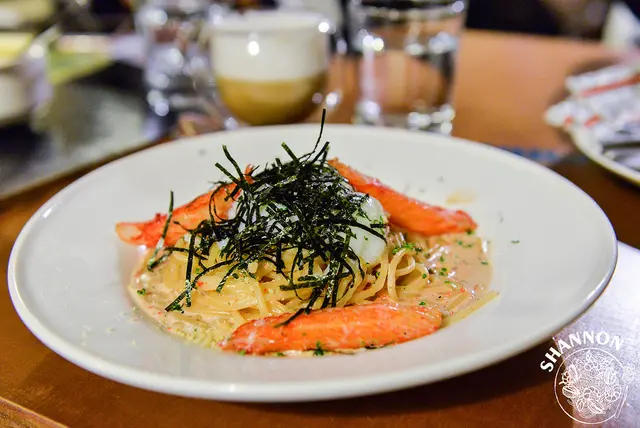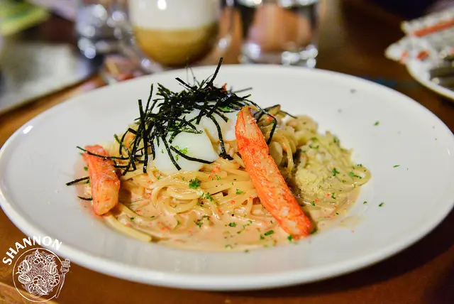 朋友點用的其實我也考慮想點這個,醬料較多且明太子也在嘴裡多了些口感,奶香濃度剛好麵條有彈性隨著醬汁一起入口份量搭起來似乎很OK,再多的話可能會膩口!