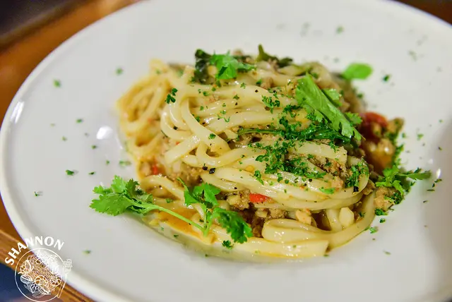 微酸香辣的打拋豬肉吃得挺過癮的,搭配上讚岐也是我第一次看到,老闆的創意讓這道料理特色又美味!