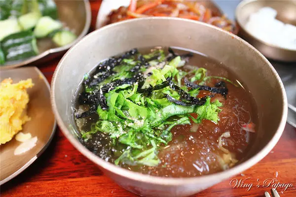 冷湯,很少看到台灣韓國料理店有提供道地的韓式冷湯,除了青菜及海苔絲,