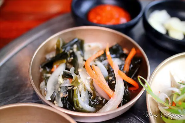 海帶芽搭配紅蘿蔔及洋蔥絲再灑上芝麻提味,酸香脆嫩,清爽順口。