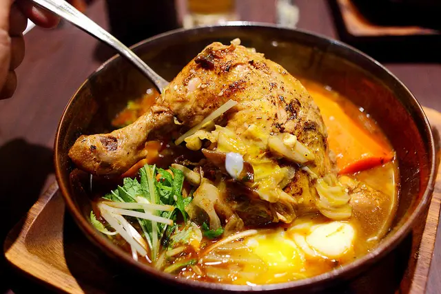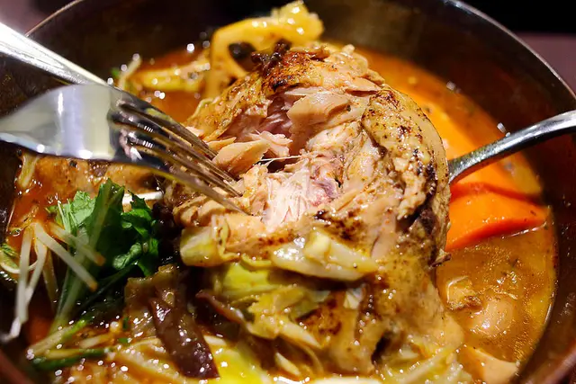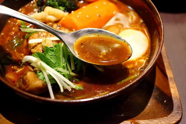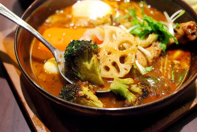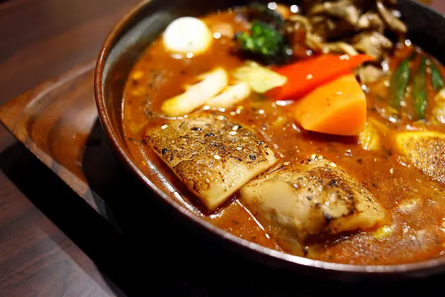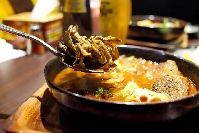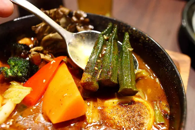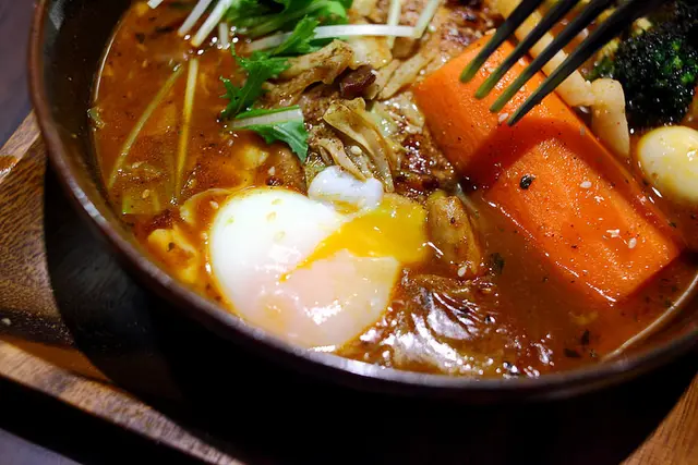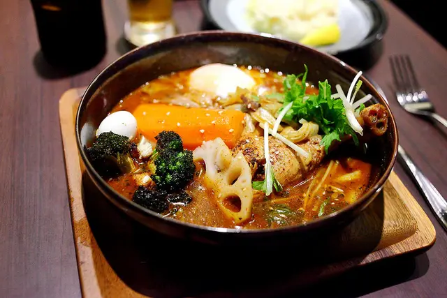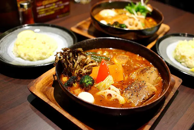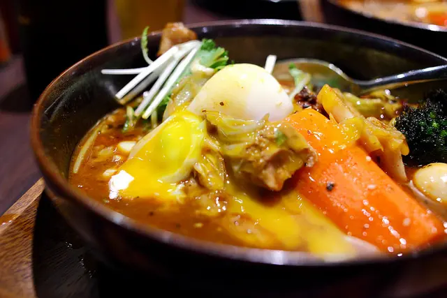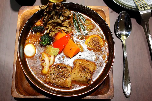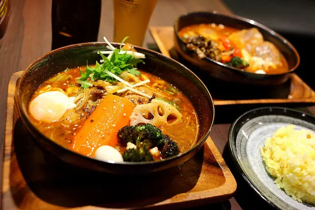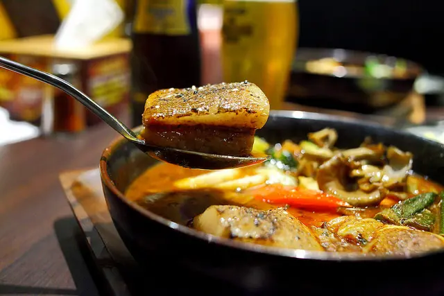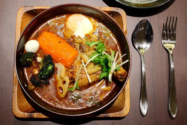 湯咖哩主要是以羹湯樣貌呈現,以大量蔬菜及新鮮的燉煮食材搭配,暖呼呼的湯頭最適合寒冷北海道