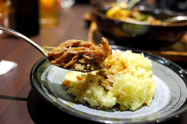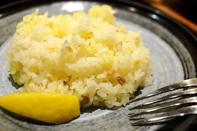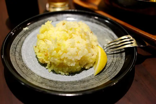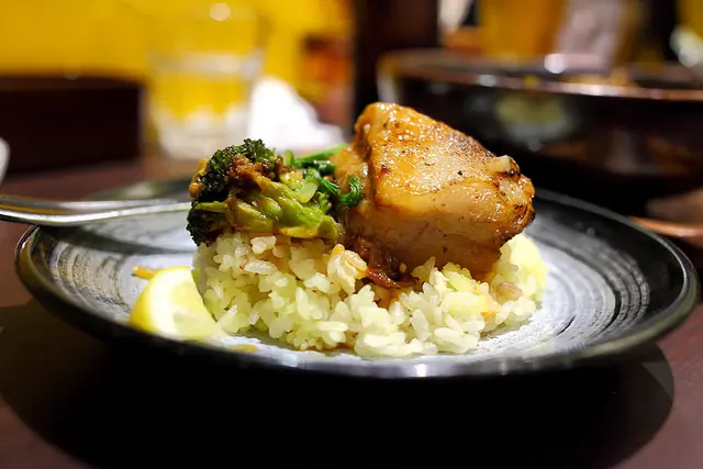 北海道スープカレーGARAKU 台灣所附的飯是薑黃飯,使用的米種是越光米加入了十穀米