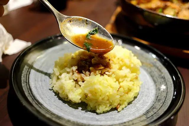 伴著濃郁微辣的湯咖哩一起入口,不僅感受不到東坡肉油膩感,入口濃厚甘甜油脂瞬間在口中化開