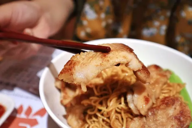 豬排份量大到快要看不到撈丁了,使用的是里肌肉部位,有特別醃製過所以吃起來特別有味道,肉質軟嫩又甜,很像是有厚度的松阪豬肉的錯覺,