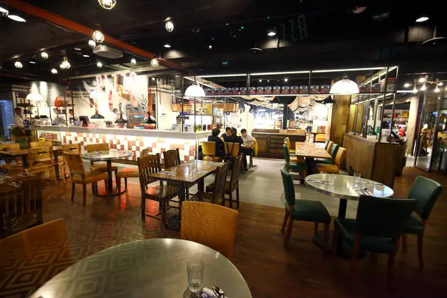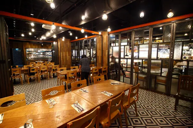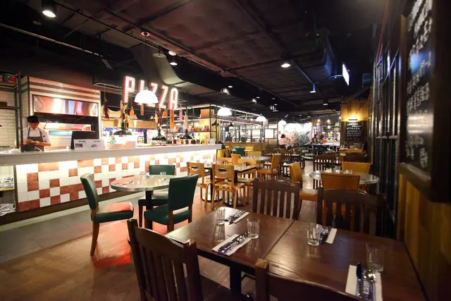 位在信義新天地A11館三樓的Jamie’s Italian Taiwan裝潢風格走的是英式小酒館的氛圍,以大量木格窗戶作為與百貨的隔間,融入大量英式元素,霓虹招牌、皮沙發,開放式的廚房及吧檯,相當熱絡又有質感用餐環境